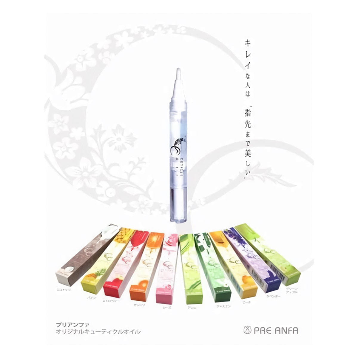 主成分のミネラルオイルで指先のキューティクルをスピーディーに保護します。10種類の香りでアロマテラピー効果もあります。